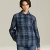 Blue Tartan women's overshirt 100% Cashmere | Kiton AVIO | Womens Shirts and blouses